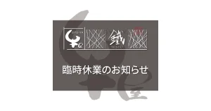 さて、このたび牛屋 – 鐡 -では誠に勝手ながら下記のとおり臨時の休業日とさせていただきますのでお知らせ致します。