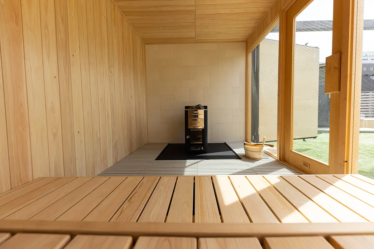 薪ストーブブランド「HARVIA(ハルビア)」社製のストーブを使用し、セルフロウリュで体の芯から温まる本格サウナ体験を提供。